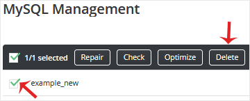 4. Click on Delete. Please do it again to confirm the removal of the database.